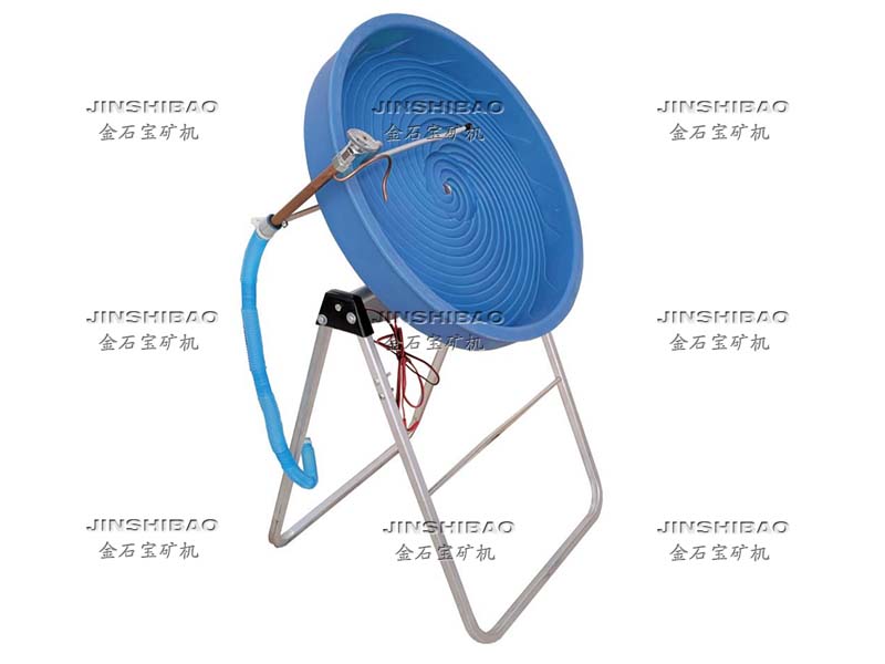 该机由螺旋转盘、减速器、固定支架、喷淋管、水泵、等部件组成,带有俯仰和喷水调节系统,可调节品位和回收率。螺旋转盘由有多个单独的螺旋组成,当螺旋旋转时,黄金重矿沉到底部,螺旋轮引线将其旋起,并将其提升到轮盘的中心孔,在那里它穿过空心轴,进入一个黄金捕获杯!使用十分钟后就是淘金高手。
